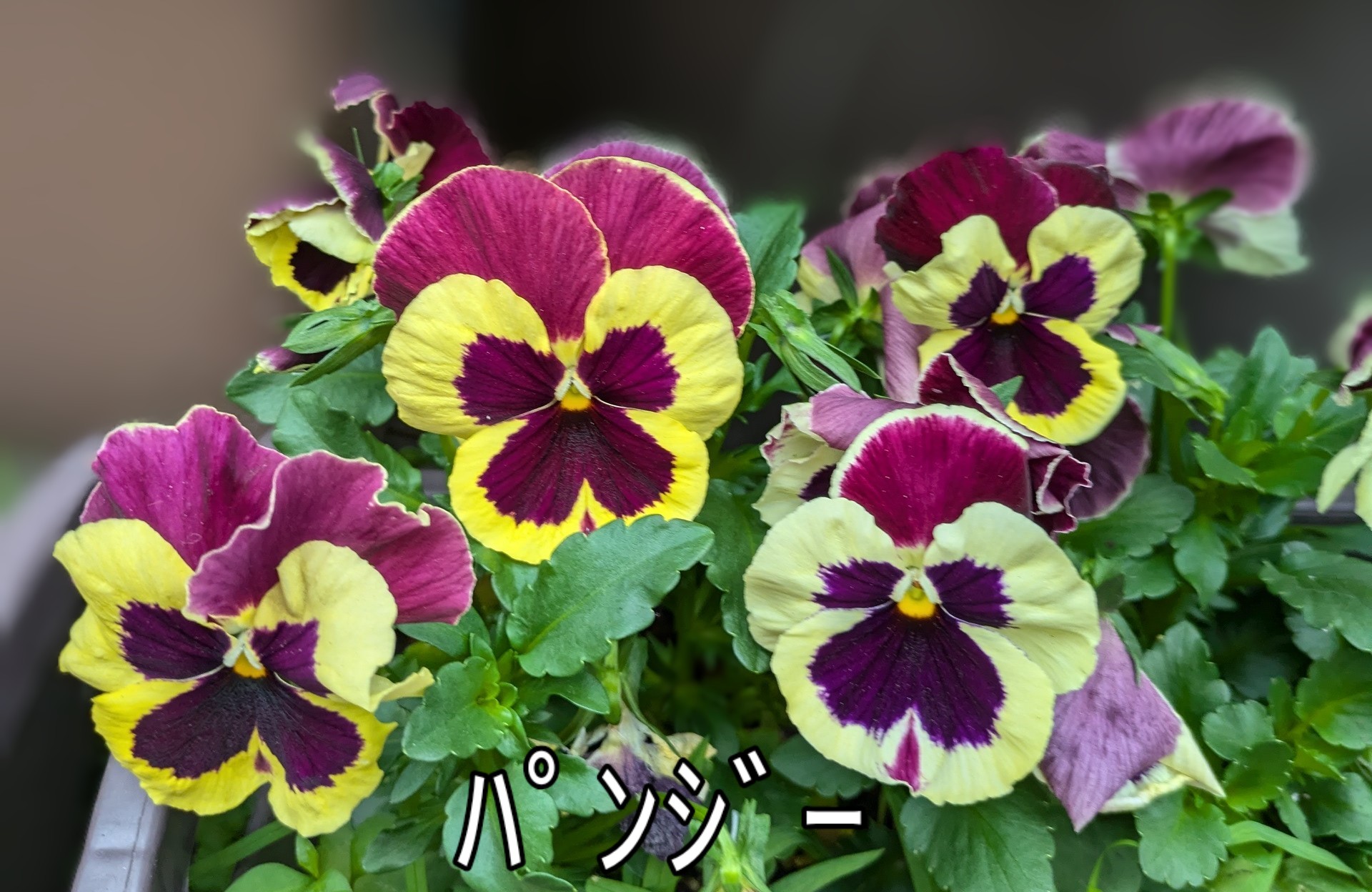 カラフルなパンジーの花がミッキーマウスみたいでかわいい💞
