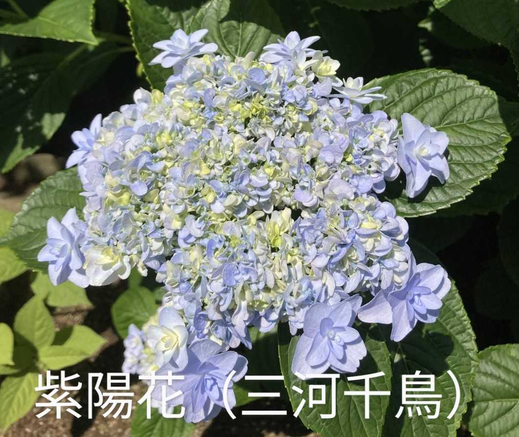 紫陽花(三河千鳥)淡いブルー色の花がたくさん集まり咲いていました