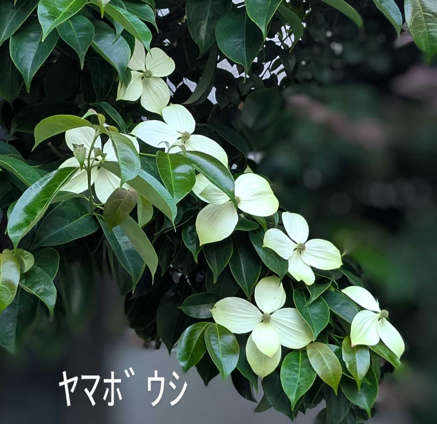 真っ白なヤマボウシの花がアナベルのとなりに咲いていました