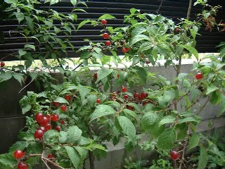 柿の実がずいぶん大きくなりました。葉っぱの色もずいぶん変わりましたね。やっぱり5月の頃の葉っぱからすると濃い緑になってちょっと大人になった感じです。数も10個くらいあるかな~。去年はちょっと渋かったから、今年は肥料(油糟)をあげてみました。甘くなるといいなぁ。あ、それから名前がわからなくて教えてもらったゆすらうめたくさんなりました。緑の中に赤い実がたくさん。可愛いでしょ~。junjunに食べられることを教えてあげなきゃ。ちょっとすっぱいから食べないかなぁ。実がなるってうれしいね♪