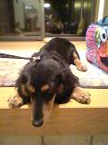 暴れん坊のロト。リビングをすごい勢いで走り回る。おもちゃを投げろって持ってきた。投げると喜んで取りに行く。※すご~い賢いね~。持ってきたね。もう1回投げるの?離してくれないと投げられないよ。コラッ引っ張っちゃダメじゃん。・・・綱引き??よ~し負けないぞ。オーエス、オーエス♪やった!!取ったぞ。行くよ~。ポ~イ。※印に戻る繰り返し 繰り返し 繰り返し 繰り返し・・・・・さすがに疲れてきたよ。ちょっとおとなしくしてくんないかな。タオルを一本。エィッ!!やっぱり固まった。ロ~ちゃん、ちょっと休憩させてね。(^_^;A)