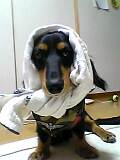 やられてしまいました。被害者はビデオラック。現場検証をしていたら現場に犯人が戻ってきました。悪そうな顔をしています。まだ隙あらばやってやろうって顔してます。気がつくと部屋のあちこちに綿が落ちています。被害者はクッション。見るも無残な姿です。犯人はサンタクロースのような白ひげをつけて変装しておりましたが、すぐ取り押さえられました。最近、噛むのが楽しくて仕方がないのか、あちこち齧って、被害者続出です。一箇所は危ない所だったので「ウナ」を塗ってみました。近寄ってきた犯人は、くしゃみして逃げていきました。防犯対策として「ウナ」や「バンテリン」「ヴィックスベポラップ」などが有効なようです。(笑)