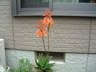 引っ越した時に鉢植えで実家から持ってきたんですけどね、花が初めて咲きました。私もこの花を見るのは初めて。みんなもあんまり見たことないんじゃないかな。葉っぱは結構見ると思うけど・・・・・。さぁノーヒントでわかった人いるかな?第1ヒント葉っぱは食べられます。第2ヒントしかも栄養があって、万能薬として重宝されます。火傷とか蜂に刺されたとき付けられたような記憶が・・・・。わかった????第3ヒント食べると苦~いの。しかもヌメヌメしてる。でも加工されてよくジュースやヨーグルトに入ってる。それは苦くないから、みんな結構好きじゃないかな。第3ヒントでわかったかな?正解はアロエでした~。アロエってこんな花が咲くんだね。サボテン系に花が咲くのは水が少ないからなんだって。種の存続を危ぶんで花を咲かせるって聞いたような・・・・。水遣りサボるのもいいこともあるね。(爆)