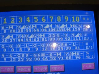 夜、うちの両親とjunjun、それから妹と甥っ子3人と一緒にボーリングへ行きました。何を思い立ってか、この間からじいちゃんがボーリングへ行こうって言い出してたので、私の仕事が早く終わった今日行くことに。2レーン借りて、大人と子供と別々にやりました。じいちゃん、ばあちゃんは第1次のボーリングブーム世代。確か小さい頃実家にマイボールがあったような・・・・二人ともなかなかです。妹もなんとなくまぁそんなものでしょう。でも私、今日は絶不調でした。すざまじく右に曲がるの。どんなに左端から投げても右側のガーターへ。見るに見かねたじいちゃんが反対に右端から投げろって言うから、右端から投げてみたら、あっという間に右側ガーターへ(-_-;)junjunたちと一緒にガーターなしレーンに変わりたかったわ。見えるかなぁ。3番目が私。5フレまでで・・・9って!!1ゲームのスコアが31って!!ひどいにもほどがあるよね~。自分でもびっくりです。甥っ子次男坊とjunjun(+ばあちゃん)の可愛いショット。スコア・・・ちびっ子達に負けちゃったよ~。(爆)