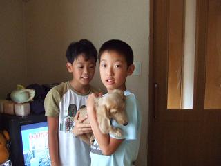 準備万端o-kiyo家へほーちゃんが旅立って行きました。ありがたい事にご家族総出でお出迎え。ちゃんとダックス用に長めのキャリーバックも買って持ってきてくれて、前にお貸ししてた「一緒に暮らそう!ミニチュアダックスフンド」の本もみんなで熟読してくれてたし、このご家族の一員にしていただけるなら安心でしょう。もうロトもseiもずいぶん慣れて、最初のころのように吠えなくなったし、ロトがタロウ君の手を枕にして眠っちゃったり^^やっぱり、こうやってロトやseiも人に会わせていかないとダメだな~(^^;)お茶をしながら、気になることをお伝えしていよいよお別れの時間。junjunがタロウ君に抱き方の説明をしながら、受け渡しでも説明の仕方が悪いから、余計ややこしい。・・・・ごめんねタロウ君(^^;)こうして、ほーちゃんも無事にo-kiyo家の一員として迎え入れられたのでした^^