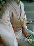 普段はどっちかというと寒色が多いし、もっとはっきりした色を着せられがちなんだけど、訪問着を作る時に母が「お祝いごとに着るのに、あんたが寒色着ると、淋しくなりすぎる。歳とっても着れる優しい色にし。」と作ってくれたものです。