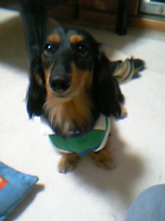 写真を撮らせてくれないので、お洋服きせちゃいました。