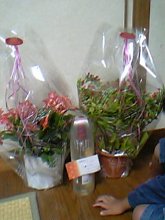 とりあえず、今日はここのところ毎年している結婚記念日の花とワインだけ渡しました。