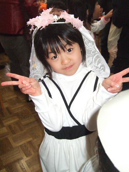 保育園最後の発表会真惟は今年、保育園の年長なので、保育園最後の発表会でした。題目は、ミュージカル仕立ての「オズの魔法使い」。「西のよい魔女」役を真惟は担当しました。練習では大きな声でできていました。ほかの子の台詞もしっかり覚えてばっちりでした。が、やはり本番になると緊張したのか、声が小さくなってしまいました。でも、がんばって魔女役をやりきりました。毎年見てきましたが、みんなしっかりしてきたなあと思います。子供たちが力を合わせて作り上げたミュージカルになったと思いました。リズム遊びの発表やよさこい踊り発表も上手にできていました。真惟も思い出となる発表会になったようです。 来年は小学生。今までのような発表会はもうないと思いますが、また違った成長を見られるのが楽しみです。