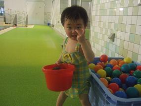 3週間ぶりにベビースイミングに行ってきました。今年初でもあります!今日は6組の参加でした。由惟は、体操のときはとてもいい感じでやっているのですが、いったん水の中となると、母にホールド!!それでも、バタ足や ぶくぶく~ ぱあ~ は、つかみながらもやってくれました。あと3ヶ月で母が仕事復帰するので、できるだけ親子で楽しんでいきたいと思います。