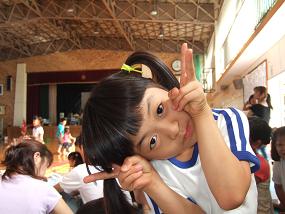 保育園最後の運動会真惟の保育園での運動会は今年が最後。母と由惟と真惟と3人で行きました。由惟をおんぶして真惟を自転車後部に乗せて荷物をかごに入れるという状況でした。今年はたくさん出番があり、一日飽きることなく見ていました。みんな大きくなって、しっかりしてきたなあと感心しました。年長さんは、次の種目の準備のお手伝いもこなしていました。真惟もちゃんとやっていたのでよかったです。 たすきリレーはスムーズに受け渡しができて、真惟自身満足できたようでした。障害物競走のようなことをする種目(走れ!レスキュー隊)では、真惟は、跳び箱も上手に跳んで、こけることなくゴールできました。お昼は、お弁当をお友達家族と一緒に楽しく食べ、午後の競技が始まるまで、子どもたちはみんな思いっきり遊んでいました。(ちょっとした遠足気分) 先生方は体育館のステージ上で打ち合わせも兼ねて食べているようでした。鼓隊の発表では、子どもたち自身の手作りTシャツ(写真は開会式時のものなのでTシャツは着ていませんが・・・)を着て、そろって太鼓をたたいて頑張っていました。 (これが手作りTシャツです)玉入れでは、真惟の白組は赤組の数に惜しくもいたらず、負けてしまいましたが、みんな一生懸命やっていたので勝っても負けてもどちらにも拍手を送り、喜び合いました。 親子でダンスをする場面では、由惟を保育園の先生が抱っこをしてくださったので、真惟と母と2人でしっかり踊ることができました。真惟はとても嬉しそうに楽しそうに踊ってくれました。母も真惟としっかり向き合って楽しくできました。やはり、一対一で触れ合うことも大事だなあと感じました。 運動会の最後に、参加賞として組み立て式のフラフープをもらいました。(帰宅してさっそく遊んでいました。)真惟にとって保育園最後の運動会、よい思い出になった運動会でした。