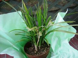 昨日、自称万年22歳のセレブな奥様から、私が頂戴、頂戴とおねだりしたため、無事に届いたこれね。彼女のページにいって見てきたら、「シュンラン」っていうんだって。それも知らなかったよ。私でも育てられるらしいよ。 私はガーデニングなんて、本当に初心者もいいとこ、なんにも知らないから、このまんま、ベランダにもってきて、水やって、肥料もやって、日に当ててたのよね。それがね、やっぱり心配になったのでしょうね。彼女、今超忙しいのに、連絡してきてくださいました。花が心配よね、、、