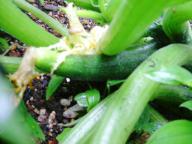 もう夕方だよんお風呂に入って、夕ご飯の支度しなきゃ。ああーなんかかんか、やることいっぱいだったわね、今日も。昼寝ができなかった。とっても損した気分。私を運ぶドライバーがいないもので、歩いて、あっち行って、こっち行って、1周してきた。仕事場から帰る時、歩いて一人で帰ると言った私。優しい夫「おまえ大丈夫か、本当か。気をつけろよ」けなげな妻「ええ、あなた私は平気よ」なんちったりして。 (* ̄m ̄)プッこれではまた明日も大雨になるんでないかい?梅雨はいったいいつ明けるとですか。 花が落ちてばかりで、諦め気味のズッキーニ根っこ近くに一個隠れてた。これ大きくなるかなぁ。 私がいそがしくって、トイレタイムに鳴いても(私が)いなかったり、来てくれないので、トイレで寝ている、黒猫クリコo(=ёェё=)o キャハ♪------- ------- ------- ------- ------- ------- 掲示板◆脳腫瘍患者の広場◆は (^^)rこちらから