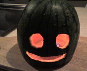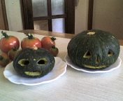 昨日、小さめと、極小さめのカボチャを頂いた。「来週はお盆だけど仕事がつまってて帰省できない。今週とにかく帰る。」と言っていた娘が、今夜遅くに帰ってくると電話してきたので、では、頂いたカボチャで、冷たいポタージュでも作ろうかとおもったら、勝手に手が動いてまたこんなものができてしまった。スイカの次がこれだよ。ハロウィンにはまだ早いよね。それにハロウィンにだって作ったことないし。ああ、やっぱり夏だ。くるった。暑い。夜になったら、灯をいれて娘を迎えよう。そうそう、あさっては、 バグの日 だそうです。お祝いはメッセージだけで結構ですから。 (´ω`;)v 脳腫瘍患者仲間の掲示板はこちらです(^^)r ◆ 掲示板 脳腫瘍患者の広場 ◆