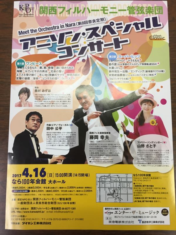 今日はなら100年会館にてアニソンのコンサート。私にとってはかなり力を注いだ演奏会でした。合計したら20曲ちょっと、それが全てデータでくるのであとはこちらで作業。まっさらでボウイングも何もありません。印刷作業から製本、ボウイングつけと手間が相当かかり大変な日が続きましたが練習でほっとして演奏会も無事に終了してあとは整理のみです。アニソンなんてあまり縁のない私でしたが今日は楽しく過ごすことができました。お客さんのお話を廊下で通りすがりに聞くとどうやら東京から来た人もいたり遠方からの方がおられたようで驚きました。すごいエネルギーだと思うとともにありがたく感じています。明日からはまた違う練習開始。さあ、がんばっていこう!