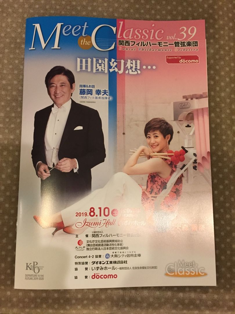 今日はいずみホールにてMeet the Classic Vol.39でした。 今回のプログラムはアンダーソン:舞踏会の美女、 セジョルネ:マリンバ協奏曲(2015年3楽章版) そしてブラームス:交響曲第2番。 マリンバ奏者には大森 香奈さんがおいでになりました。大森さんの楽器はピンクに塗られていて お洋服もずっとピンクで今日の衣装は真っ赤でした。ストールからお洋服、 靴やらまで赤とピンクでコーディネートされてました。 ここまで好きな色がはっきりしているとコディネートがすっとできるのでしょうね。 そしてピンクのマリンバ!初めてみましたがとってもかわいいものでした。 演奏されたセジョルネ、マリンバ協奏曲ですが国内に代理店がなく 直接セジョルネさんにメールしてレンタルの交渉をしました。わからないこともあったし (お金のこと)戸惑うことも沢山ありましたがひとまずほっとしています。 後、私は返却をして終了です。 後半はブラームスの交響曲第2番。やはり名曲! お盆休みを目前にいろいろとありすぎが昨日の練習、そして本番でしたが 無事に終了することができました。明日からはほっとしてお休み突入です。 日中の暑さの中の演奏会、お越しくださいました皆様に心より御礼申し上げます。