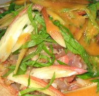 そんなわけで、ネギや大葉や生姜をいれてたたいた鰺に、ミョウガと大葉をいっぱいのせて、酢みそ風のドレッシングで。