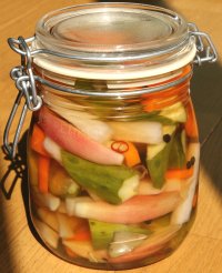 ちょうど家にミョウガがあったので、帰ってから早速、他の残り野菜(きゅうり・大根・にんじん)と一緒に漬けてみました。