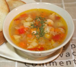 野菜中心なのであっさりスープになるかと思いきや、ソーセージや野菜からしみ出た旨味で、驚くほどしっかりした味わいのスープになりました☆