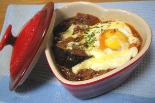 このナスミートに温泉卵をのっけた料理は、確か500円しなかったような?