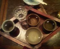日本酒飲み比べセットです。山形の14代と新潟の八海山と宮城の日本酒、2種類と地元茨城の日本酒でした。