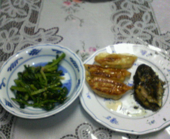 昨日の夕食から炭水化物ダイエットをはじめました。昨日は餃子とサンマとほうれん草胡麻和えです。