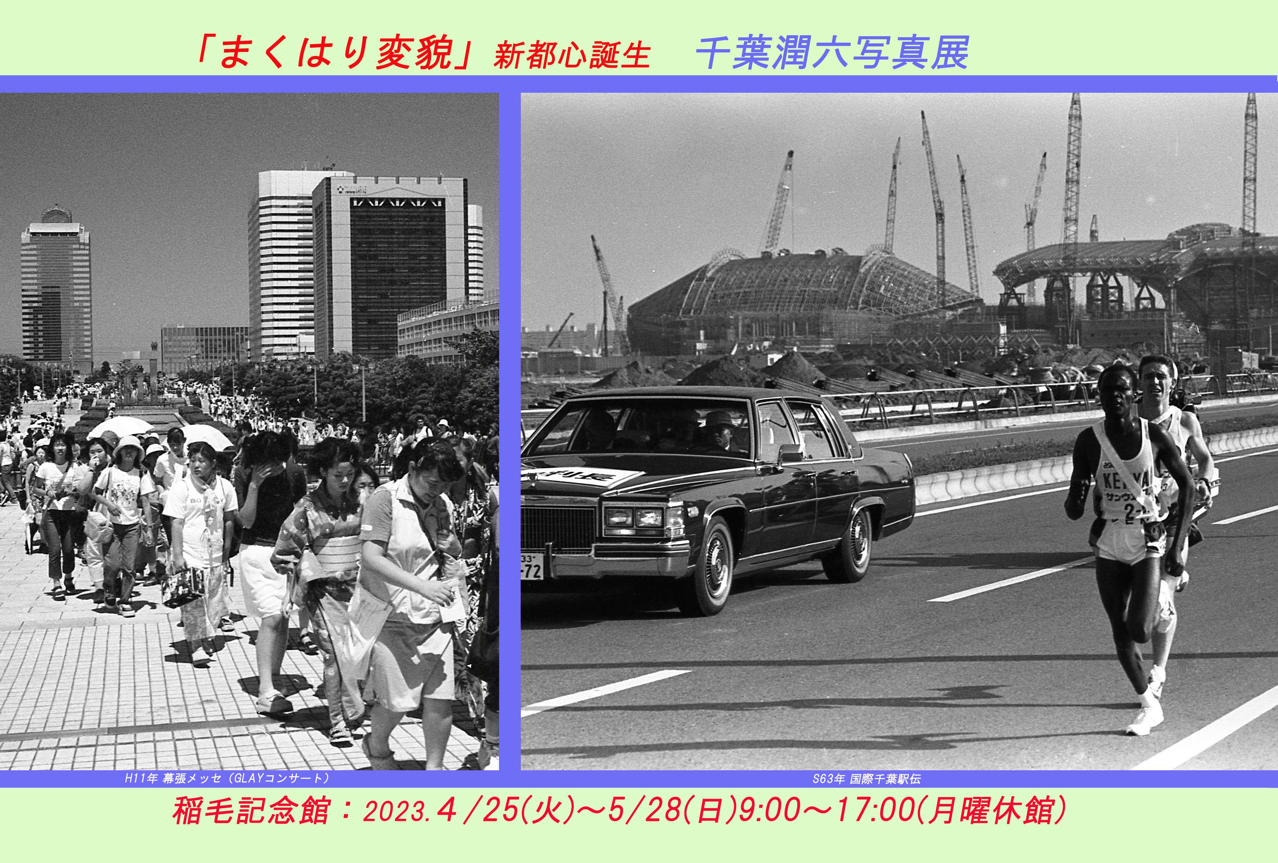 「まくはり変貌」千葉潤六写真展を下記日程で開催します。場所:稲毛記念館日程:2023-4/25(火)~5/28(日)昭和63年に千葉県幕張の埋立地に幕張新都心構想の高層ビル群の建設が始まりました。ビジネス街、イベント施設、野球場が計画され、次々に巨大な設備が出来上がるとそれらの施設のイベントに多くの人たちが集まり、街が変化して行く過程をモノクロ36点で構成しました。前回の埋立までの「海辺の記録」の続編となります。