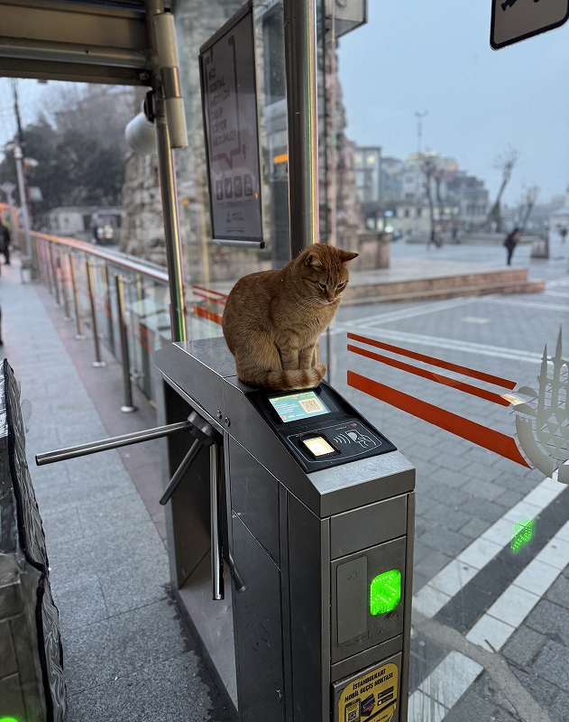 坂道が多いイスタンブール前日の降雪で道が凍っていないか心配しましたが、なんとかスーツケースを引っ張ってトラムの駅へ猫ちゃんが私たちを見送ってくれました当日の予定は、地下鉄で空港まで行くルートトラム→バス→地下鉄 下車したトラム駅で駅員に乗車予定のバスストップはどこにあるか聞いていると、同じバス停を探している女性がいたので、一緒に移動。このバス停がわかりにくい場所にあり、人に聞きながらの移動でした。来たバスが本当にこれか?と思うようなバスというよりバンのようなタイプ運賃は現金のみでした。↑がバスバスを下車してから地下鉄の駅を探すのも少し手間取る。まわりの人に聞いても、新しいためか知らない人もいました。グーグルマップも国によるのかきちんと教えてくれない。なんとか駅を見つけて無事地下鉄に乗車記録のために、いっぱい写真を残しました。世界時間を表示↑東京14時52分と表示されていますイスタンブールは8時52分です駅名がついていないのはまだ開いていない駅↑空港に隣接する駅に到着イスタンブールカードも購入できます↑日本語も選択できますフリーWi-Fiを利用するために多くの人が並んでいました。普通にパスポートをスライドしているので知っている人が多いのね・・・。12時50分発ターキッシュエアでリスボンへ