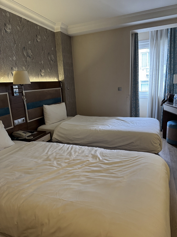ターキッシュエアラインが提示したホテルの中から選んだホテル一応ホテル窓からボスポラス海峡が見えますエアラインのアメニティー何種類かあるようで、私はカッパドキア模様靴下、アイマスク、スリッパ、耳栓そして歯ブラシが入っていました。グランドバザールやエジプシャンバザールにも歩いて行けて、トラムの駅も近くて便利なロケーション朝食では巣蜜!↓二日間で一生分の巣蜜を食べたかも(笑) カロリーを考えると恐ろしいパンにもヨーグルトにもたっぷり巣蜜