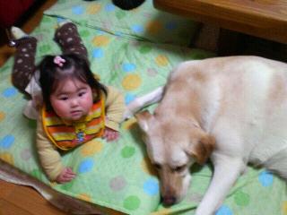 ベリコの大好きなあんなちゃんは、最近人の真似が得意そして、ハイハイはまだだけど。。。つかまり立ちは得意そして。。。今日のあんなちゃん。。。今日は、伏せをしているベリコの横であんなちゃんも伏せ