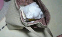 昨日、3月25日に誕生日を迎える朔太郎君と朔太郎君のパパさんのプレゼントを用意しました。朔太郎君には・・・ワンちゃん用の健康手帳とテディベアーのお腹の部分がボールになっているおもちゃ。パパさんには・・・アイピローとアイピローとおそろいの靴の湿気取りと入浴剤。そして、ママさんにもいつも沢山いただきものをしているので、・・・パパさんとおそろいの靴の湿気取りを。そして、おまけですが。。。小麦ちゃんにも・・・朔太郎君と同じ健康手帳を。そして。。。最後に。。。 このバッグをプレゼント袋として作ってみました。プレゼントは、この袋の中に。。。この袋は、昨日急に思い立って作ったので。。。ヘタっぴだけど、何かに使ってもらえたらなぁ~と思います。。。そして今日、らいこがプレゼントを届けに朔太郎君とパパさんのところに行ってくれました。みんなプレゼント気に入ってくれたかなぁ~
