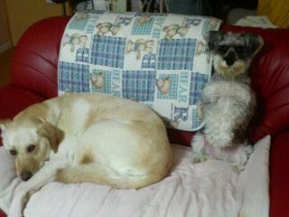 いつも夕飯になると、ベリコはソファーで、 ルビコはお父さんの胡坐の中でおやすみしてますけど、今日はお父さんが不在で、ルビコはみんなの足元でウロウロと行き場が無い様子。。。なので、ベリコの寝ているソファーに上げてあげると、安心できたのかベリコにくっつきおやすみ皆さん、ルビコ見えてますかベリコのおしりの辺りにいるんですが。。。なんせ、小さいもんで。。。基本的に、ルビコはベリコの真似をするのが好きみたいです!