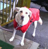 これからお散歩ですぅ~今日はなので、カッパを着てのお散歩です!朝のお散歩はちょっと少なめだったので、夕方のお散歩はちょっと多めに・・・やっぱり雨の日のお散歩は大変帰ってきたら、バケツに水を汲み足をジャブジャブカッパを着ても頭は濡れるので、タオルでふきふき!でも、ベリコも満足したようなので良かったぁ