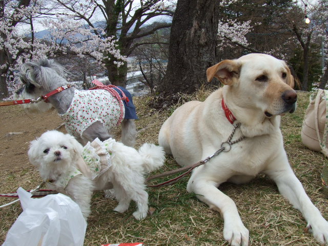 デジカメを購入してから、色々と勉強して。。。やっと画像をのせることができました。溜めてた分、沢山載せたい画像がありますが。。。とりあえず今日は、先日ベリコ&ルビコ&らいことお花見に行った時のものを載せてみます。らいこさ~ん!ちゃんとこっち向いてくださ~い。 う~~ん いい香り。。。