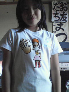先日、某ぶろがぁさん作のイラストを使ったTシャツを作成しましたが、加えて、同図柄のマウスパットを作成しました男のチルドレンは気に入っていたのですが、女の子の2ndチルドレンは「女の子の絵はないの?」と、・・・(○`。 ´○)ボソリッ…さっそく、某ぶろがぁさんへ陳情させていただきました春眠暁を覚えずのぶろがぁさんは人がいいので、すぐに女の子バージョンを描いてくれましたがっ!何を思ったか、うちの生意気娘…「半そで、ミニスカートがいいなぁ~!」だって…あたいが言いたいことを代弁してくれました!( ゚∀゚)・∵. ガハッ!!屁つれいしました Ю-(▽`*)=))))))))BUBO (。_゚)いただいたイラストを使って作成したのが、こんなTシャツです!女の子用 「はろぅちゃん」Tシャツ以前、お披露目したのが男の子用 「ヘローくん」Tシャツそして、超限定品「ヘローくん」マウスパッド只今、モニターを募集しておりますおところ、おなまえ、ねんれい、れんらくさき とご希望の 製品名を 明記して 応募してください応募者多数の場合は、抽選にさせていただきます
