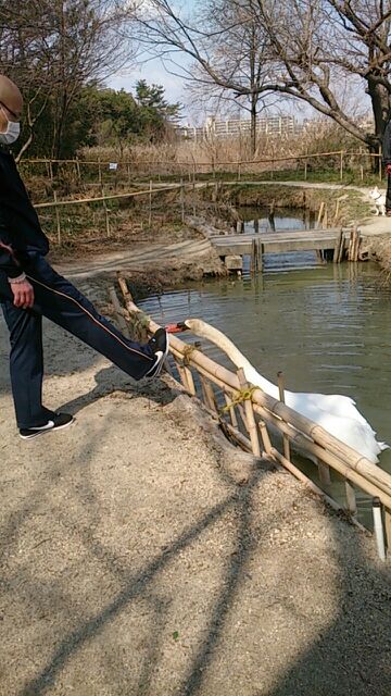 近所の池。 カモや白鳥がいます。 おじさんが、 「こいつは気が荒いから気をつけてね」 って言ってて 自分の足噛ませてた( ;゜Д゜) 呼んだら来るらしい。 白鳥すごいなぁって見てたら もっともっとおじさんの足噛みたいらしく 勢いで陸に出てきちゃって! しかも白鳥興奮してるもんだから 怖くて娘とびびりまくり。 あんなに余裕に白鳥と接してたおじさんも逃げちゃってさ。 「出ちゃった!出ちゃった」 って。 こっちきそうになったから娘抱えて 逃げる!! 思ってたより大きいんだもん、白鳥。 久々に身の危険感じて怖かった。 白鳥は水の中に浮かんでいる姿は美しい。 でも陸にいる白鳥はろくろっ首のようでした。