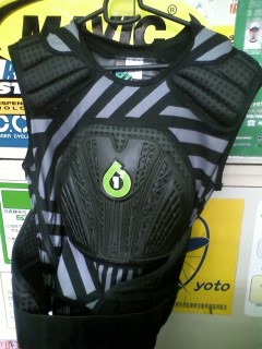 ご覧のようにベストタイプで胸と背中はしっかりハードシェルになっています。