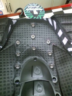 上から3つ背中のプロテクターが外れリヤットブレス等のネックブレスを付けても動きを損なう事もありません。
