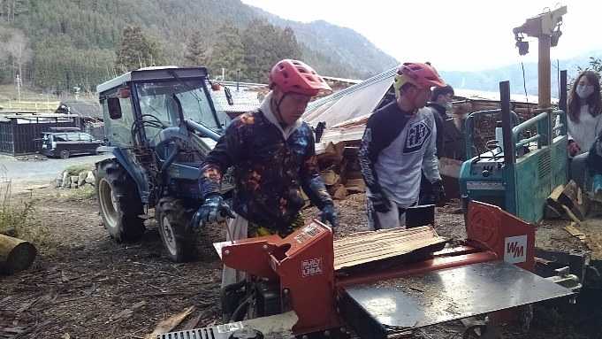普段の生活で使う事の無いチェーンソーで機械に入る長さにカット
