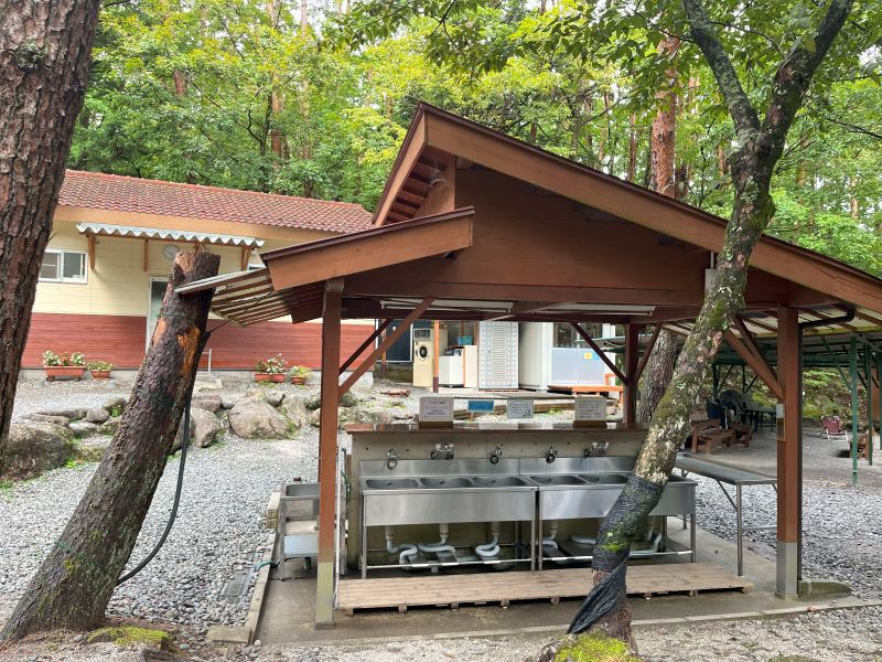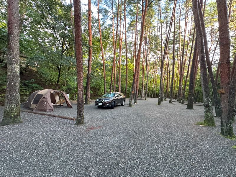 でも、綺麗に整備され、区画も広く、いいサイトだ。当日は雨だったが、キャンセルが多く、幸いサイトは選び放題で周りには利用者が1名いるくらいだった(翌朝は晴れてくれた)。
