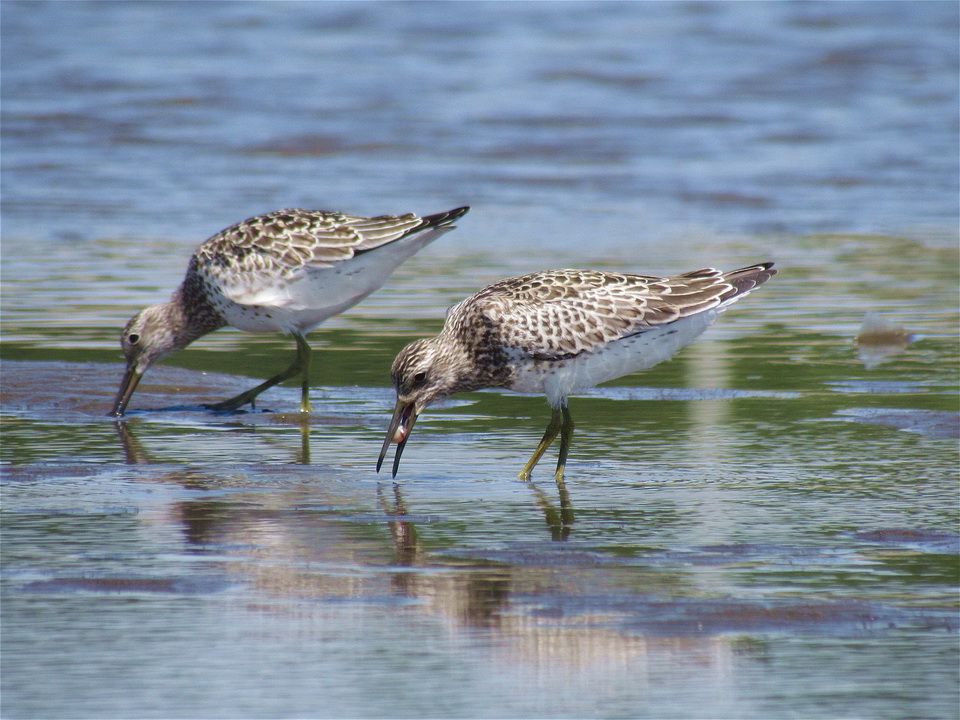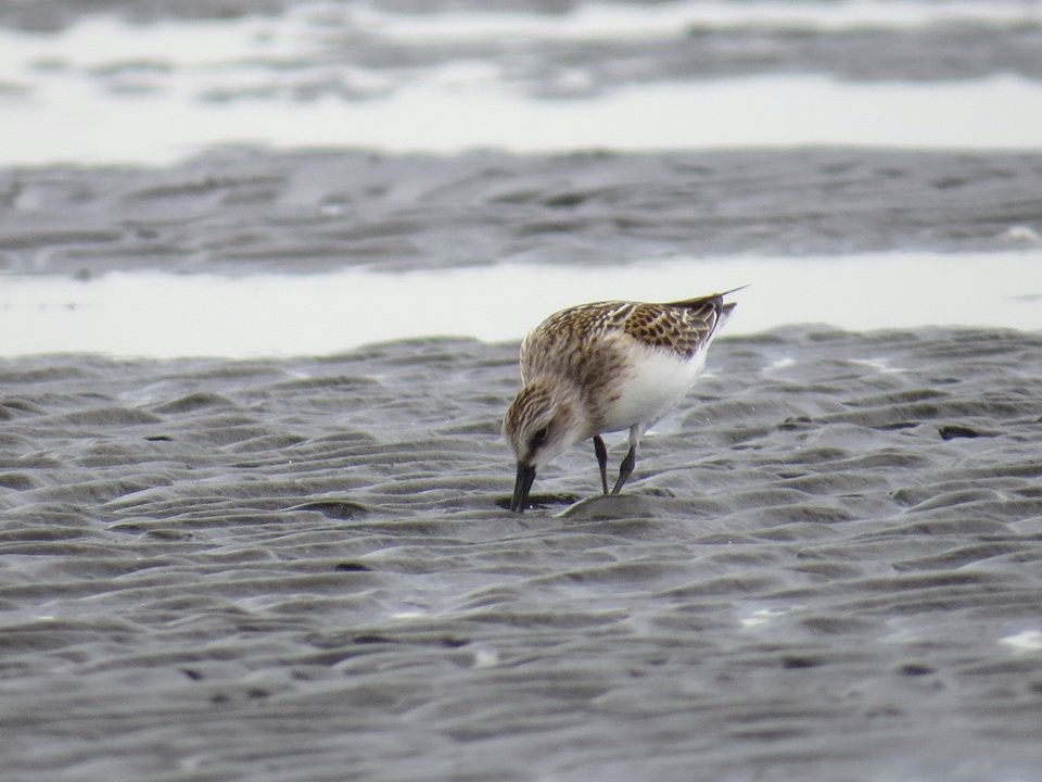 トウネンやオバシギは伏せた姿勢で餌を探します。