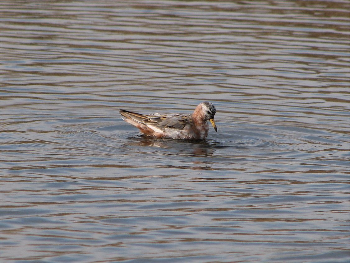 アカエリヒレアシシギ、ハイイロヒレアシシギは海洋上などの水面でくるくる回り、