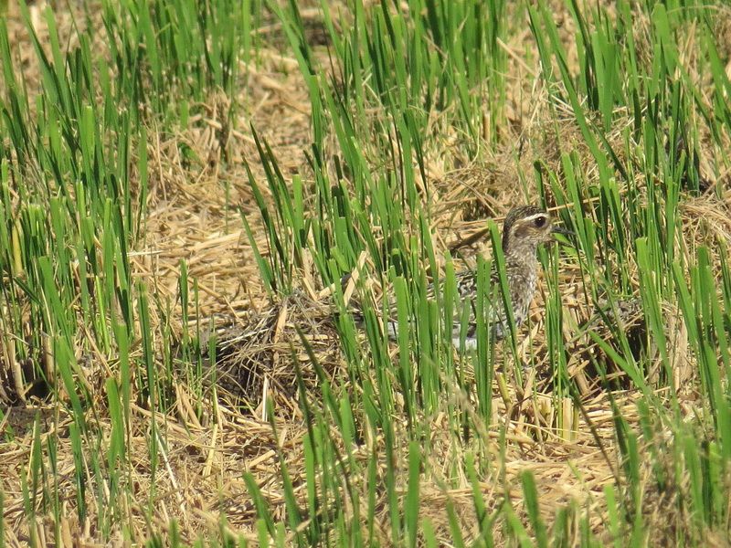 なかったものの稲刈りをしている田んぼの一角にムナグロ10羽が草の中を移動