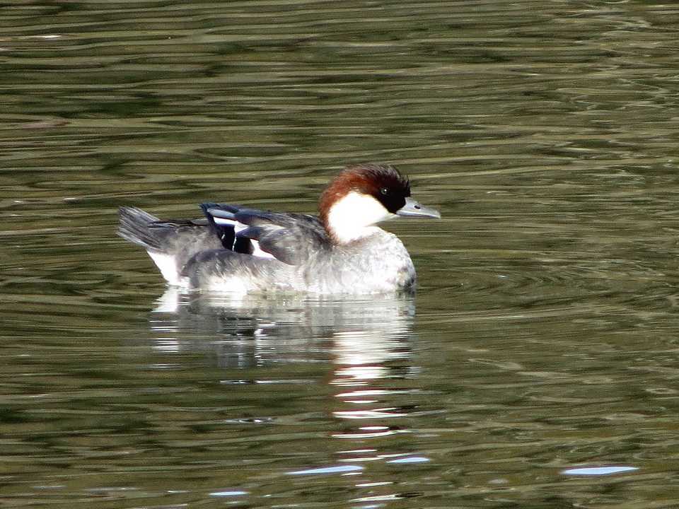 坂田ケ池ではトモエガモのペア、ミコアイサ雌、ハシビロガモといったカモたちが