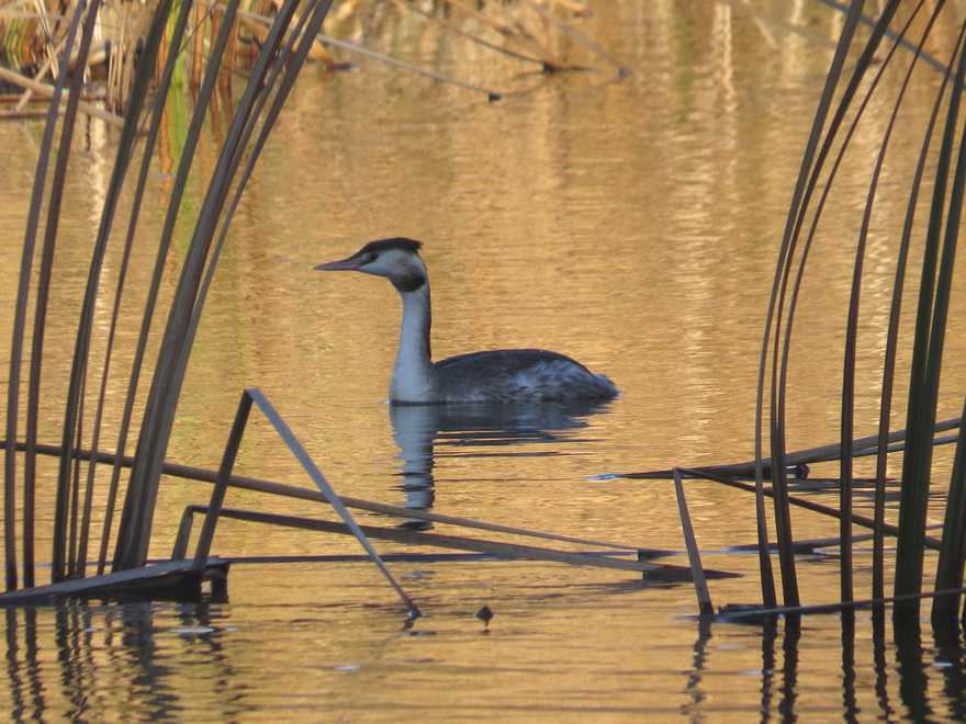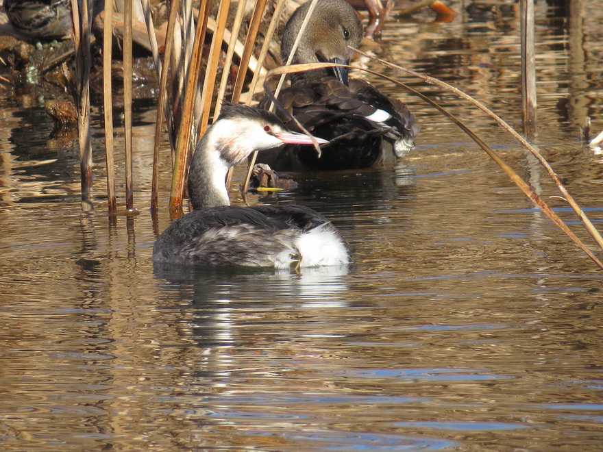 カイツブリ、カンムリカイツブリといった仲間の姿がありました。