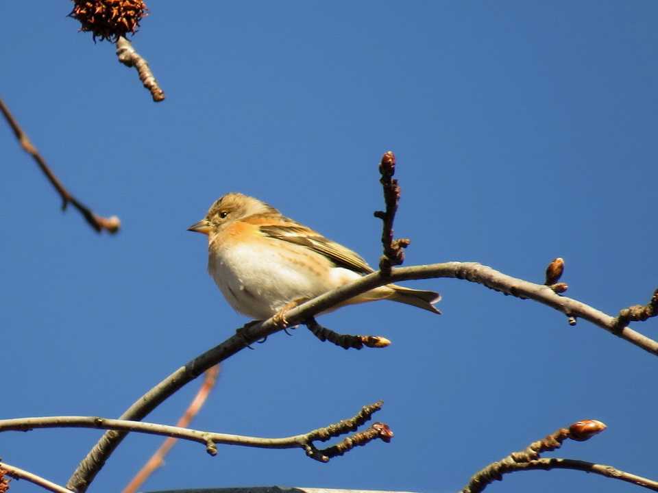 キョッキョッと鳴き声がしたと思ったらアトリが出現。木の枝に止まった個体数だけで12羽、