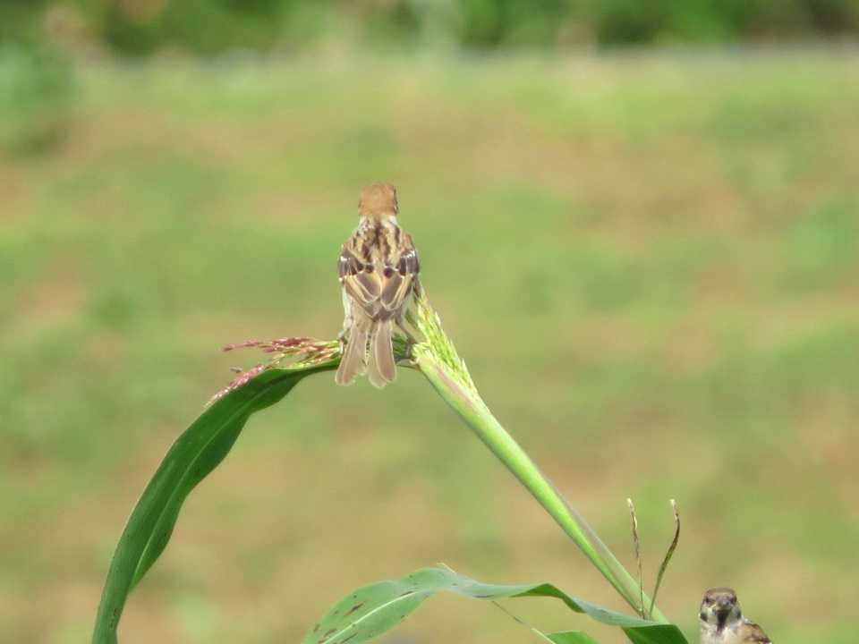 でも、ノビタキだと思って捕捉すると、上面の模様が違うスズメだったり。失敗も。