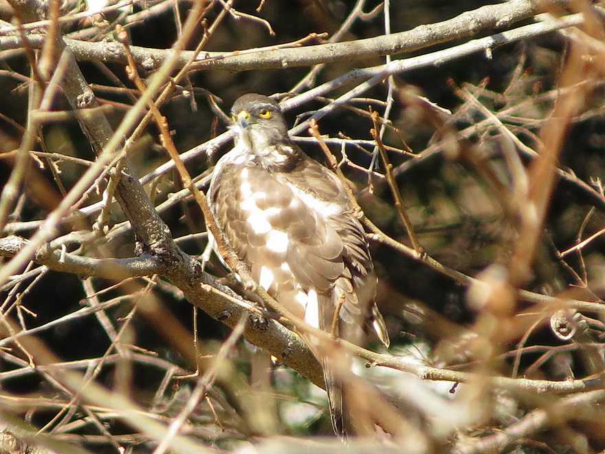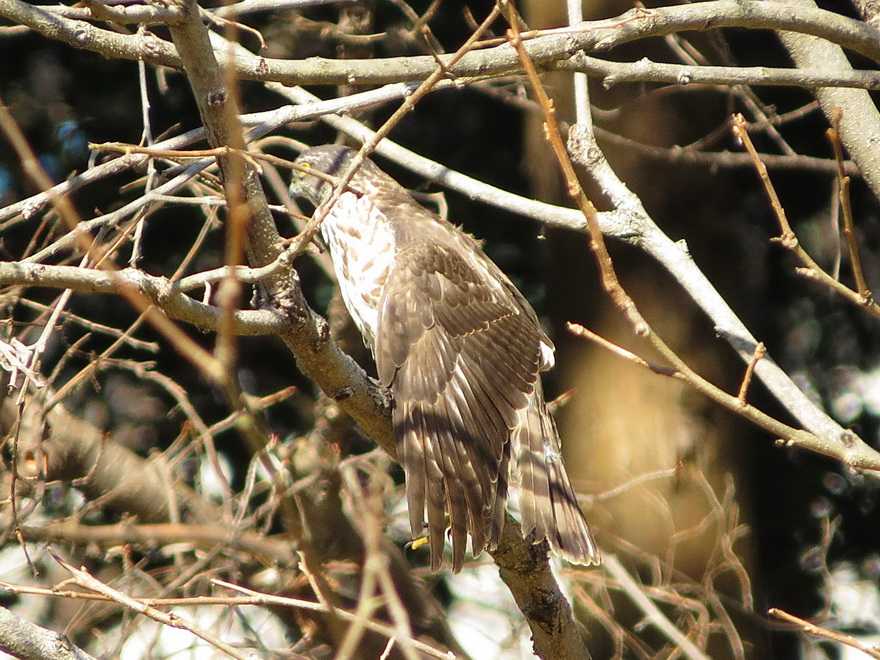 ツミ若鳥でした。30分ほど日光浴をした後、今度は地面に降り立ち再び餌を