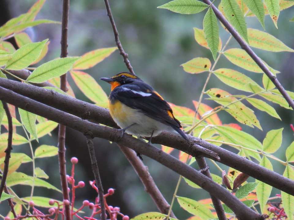 キビタキ雄は、縄張りに雌がやってくると雄はディスプレイフライトと