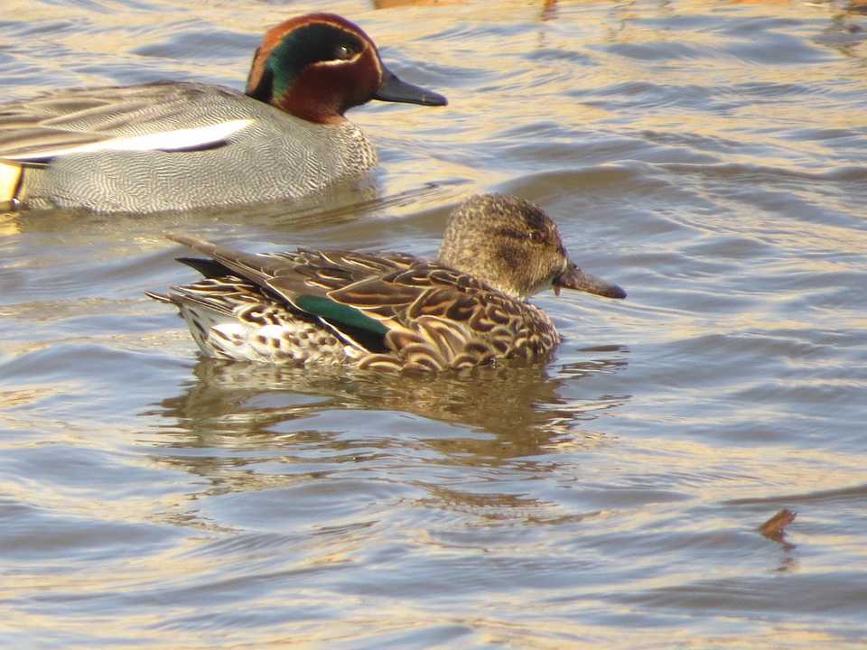 帰りがけに立ち寄った手賀沼では、コガモ雌生殖羽の嘴基部の側面の黄色の個体と嘴がほとんど黒色で黄色味が少し手出てきた雌非生殖羽の姿も発見。
